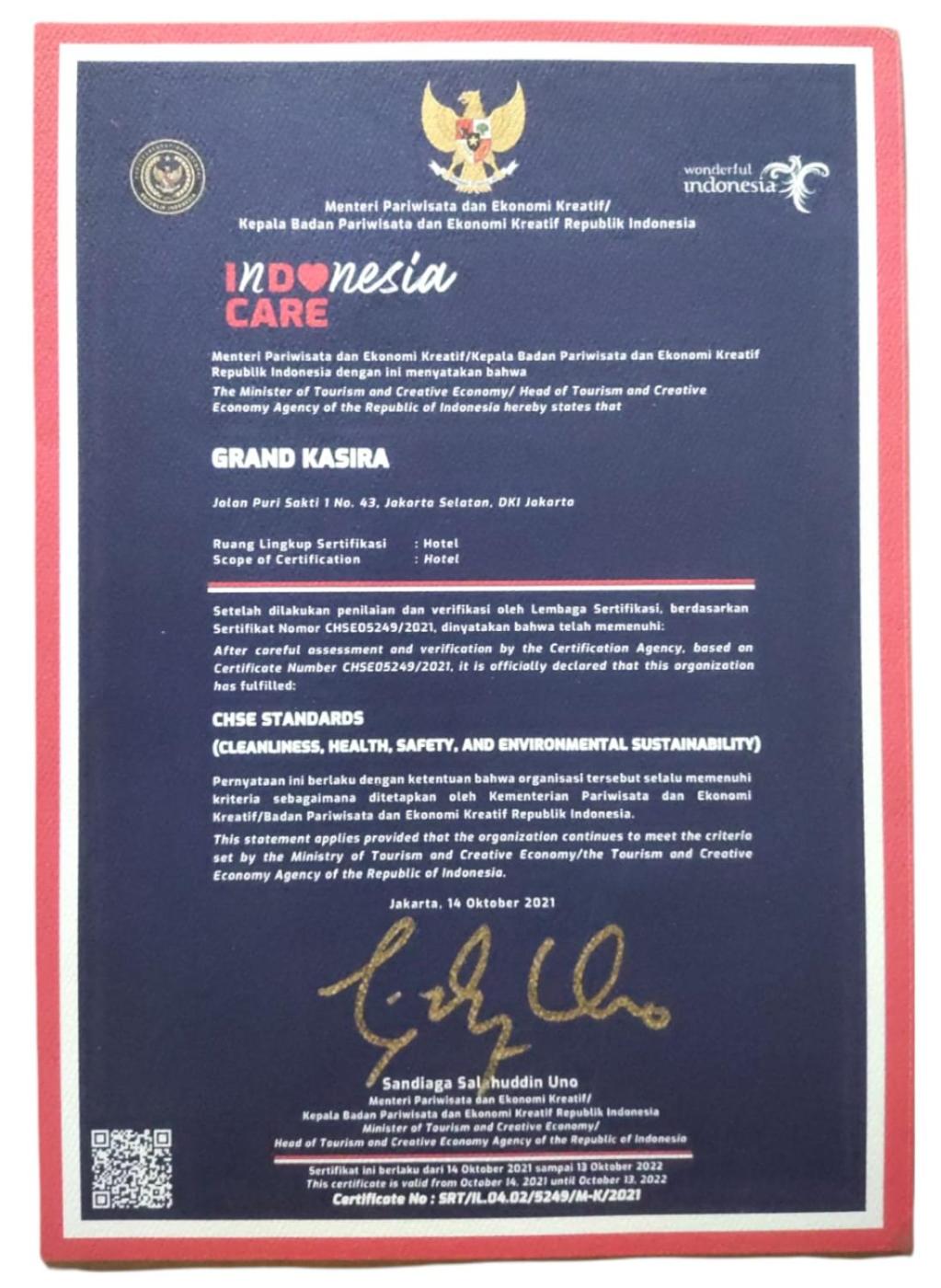 Situated in Jakarta, 4.9 km from Pondok Indah Mall, Grand Kasira features air-conditioned accommodation and a garden. Among the facilities of this property are a restaurant, room service and a 24-hour front desk, along with free WiFi throughout the property. Ragunan Zoo is 7.5 km from the hotel and Selamat Datang Monument is 11 km away.