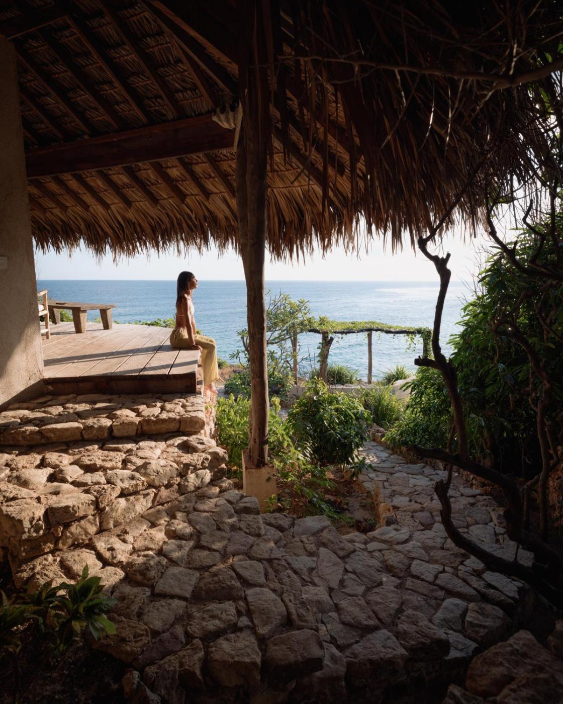 Bungalow with Sea View. Located on the top of a cove, this bungalow has great views of the ocean. It has a balcony, a living room and an outdoor bathroom. Please note that the room has an open plan concept. The Japanese-style low dining table is not suitable for guests with difficulties sitting on the floor. ;