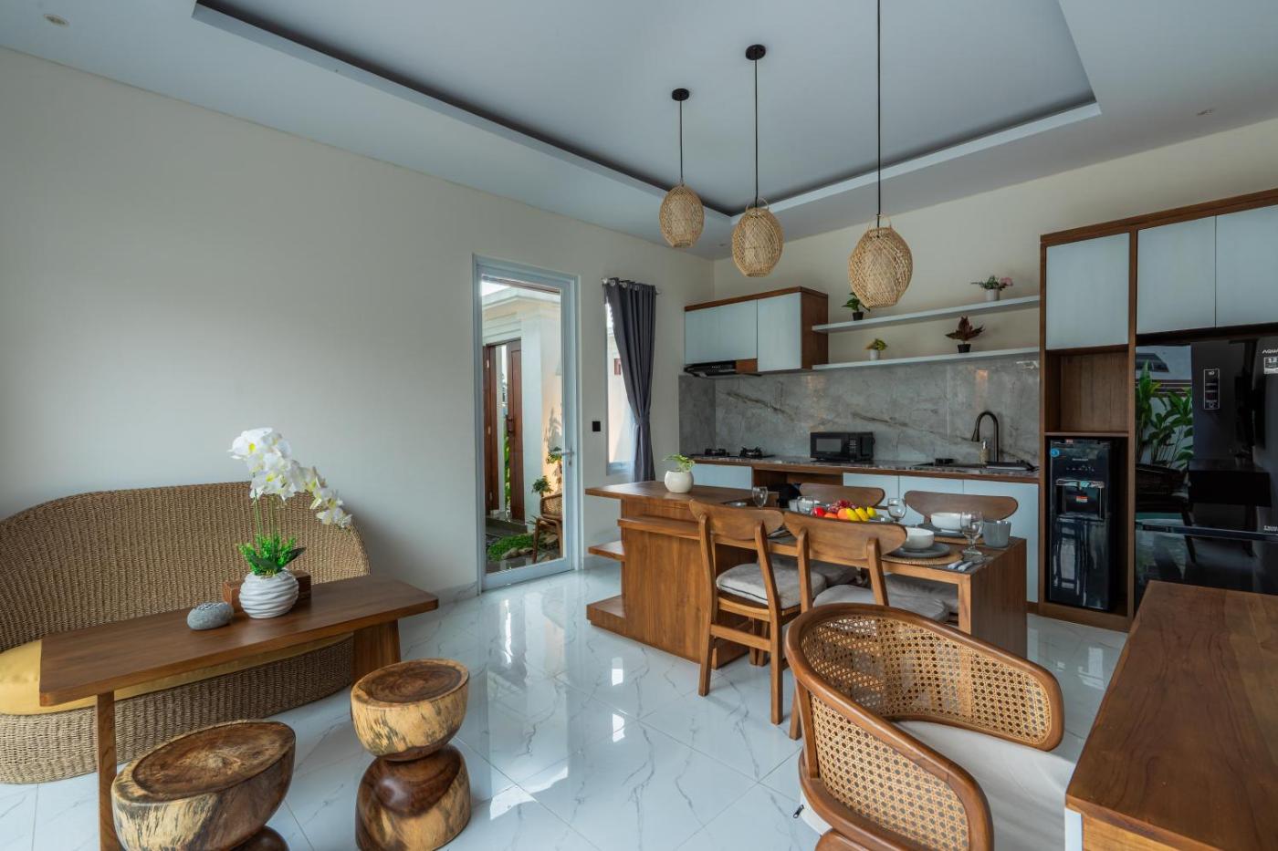 Two-Bedroom Villa. Guests will have a special experience as the villa offers a private pool. Featuring a private entrance, this air-conditioned villa consists of a kitchen, 2 bedrooms and 2 bathrooms with a shower and a hairdryer. Meals can be prepared in the kitchen, which is equipped with a stovetop, a refrigerator, kitchenware and a microwave. The villa provides a seating area, a dining area, a safe deposit box, a flat-screen TV, as well as pool views. The unit offers 2 beds.